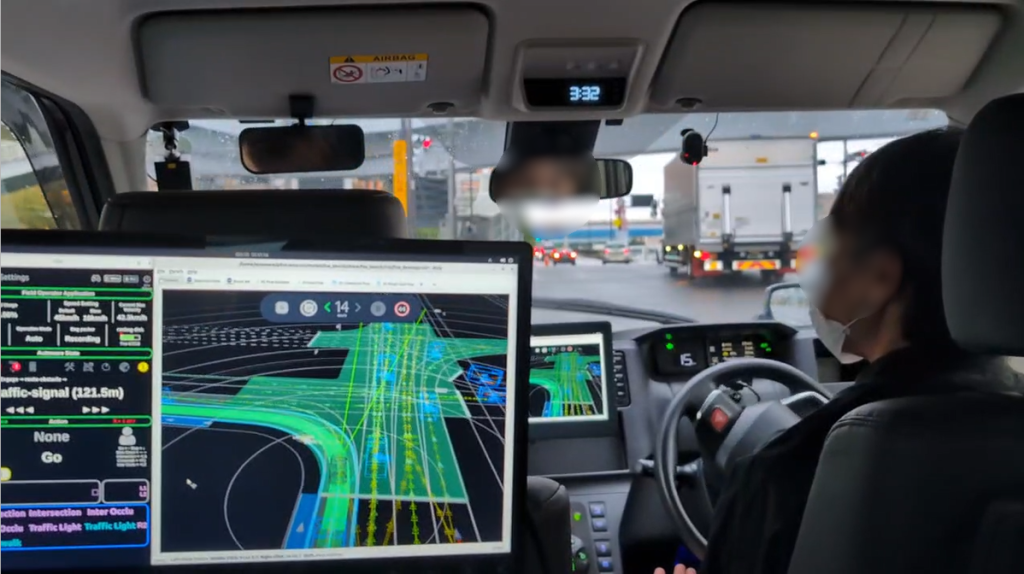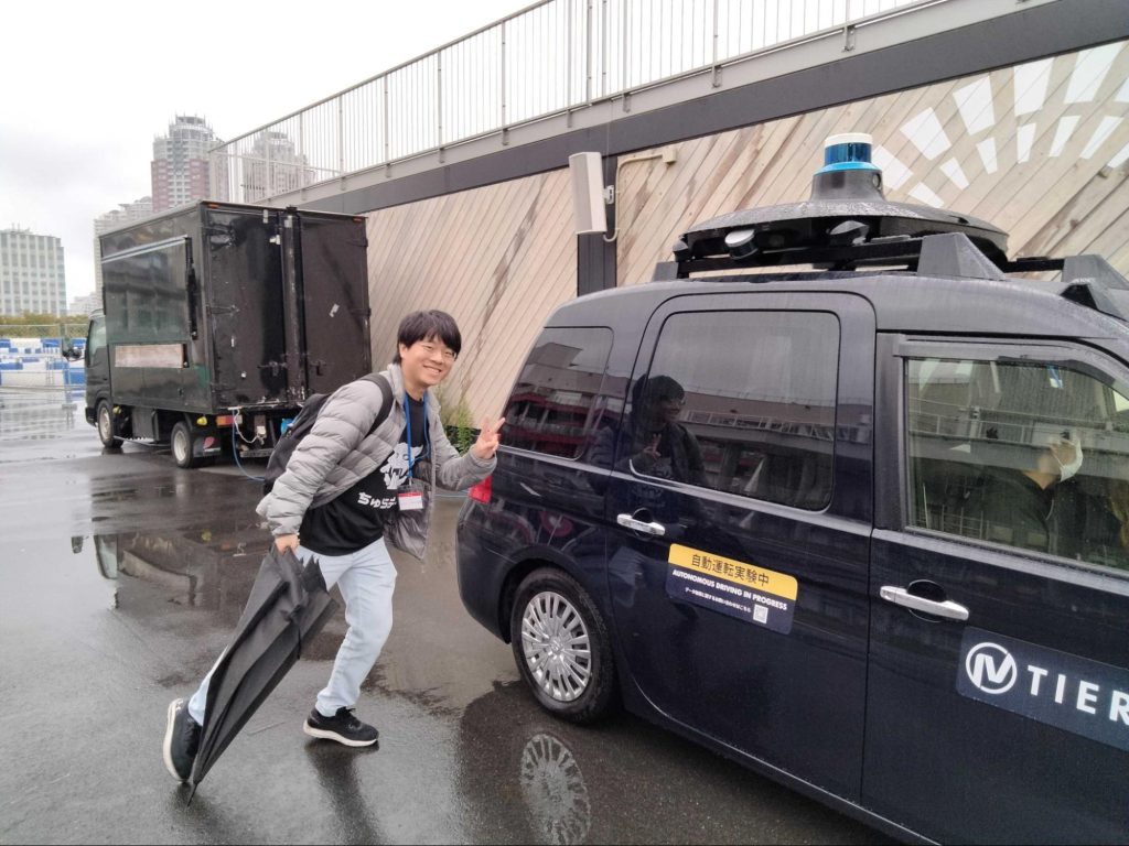また、大会期間中に合わせて、Autowareによる自動運転タクシーの試乗体験が開催されていました。我々も乗車をして、信号認識や交差点通過、本線合流など、一般道における高度な自動運転システムが機能している様子を確認できました。この競技の取り組みの先を実体験できた貴重な機会でした。