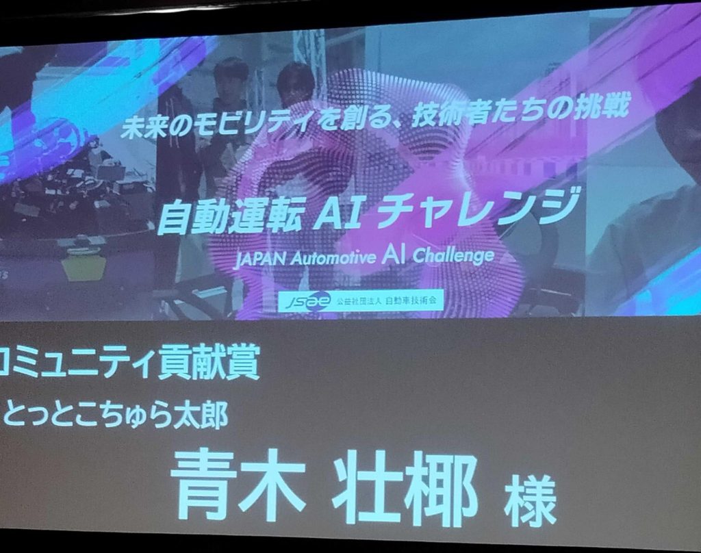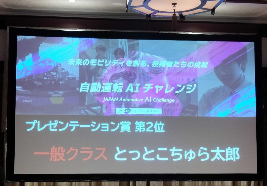 表彰式はつい先日、12/12に開催されました。当日は各チームにプレゼンの機会が与えられ、ちゅらデータチームからは、決勝に向けた取り組み内容や、競技には活用することができませんでしたが強化学習による車両操舵にも取り組んでいましたので、その内容をプレゼンさせていただきました。